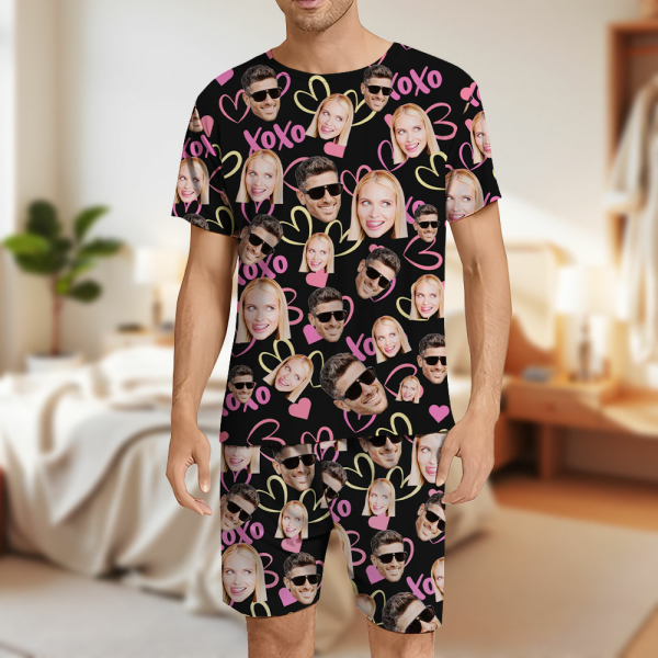 Custom Face Short Sleeve Pajamas Custom Heart Photo Pajamas Gift For Couple