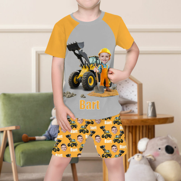 Custom Photo Excavator Pajamas Crew Neck Short Sleeve Short Pants Face House-wear Suit For Boys For Kids