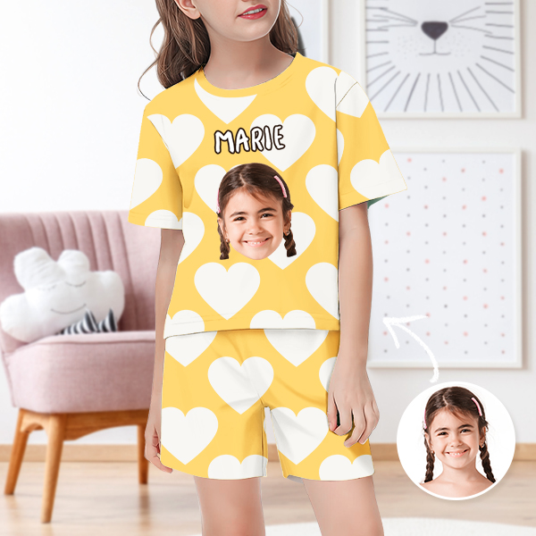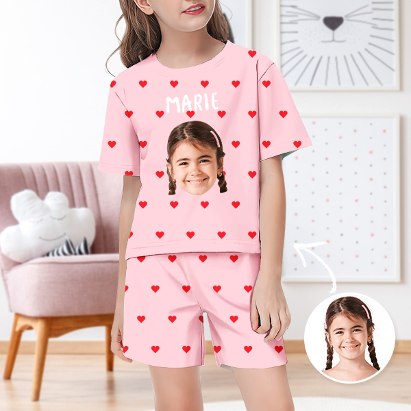 Custom Face Pajamas Crew Neck Short Sleeve Short Pants Heart House-wear Suit For Kids