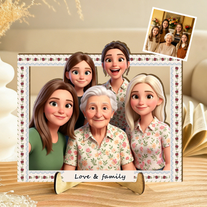 ⭐ Custom Cartoon Portrait Wooden Frame — Personalized Photo-to-Cartoon Art