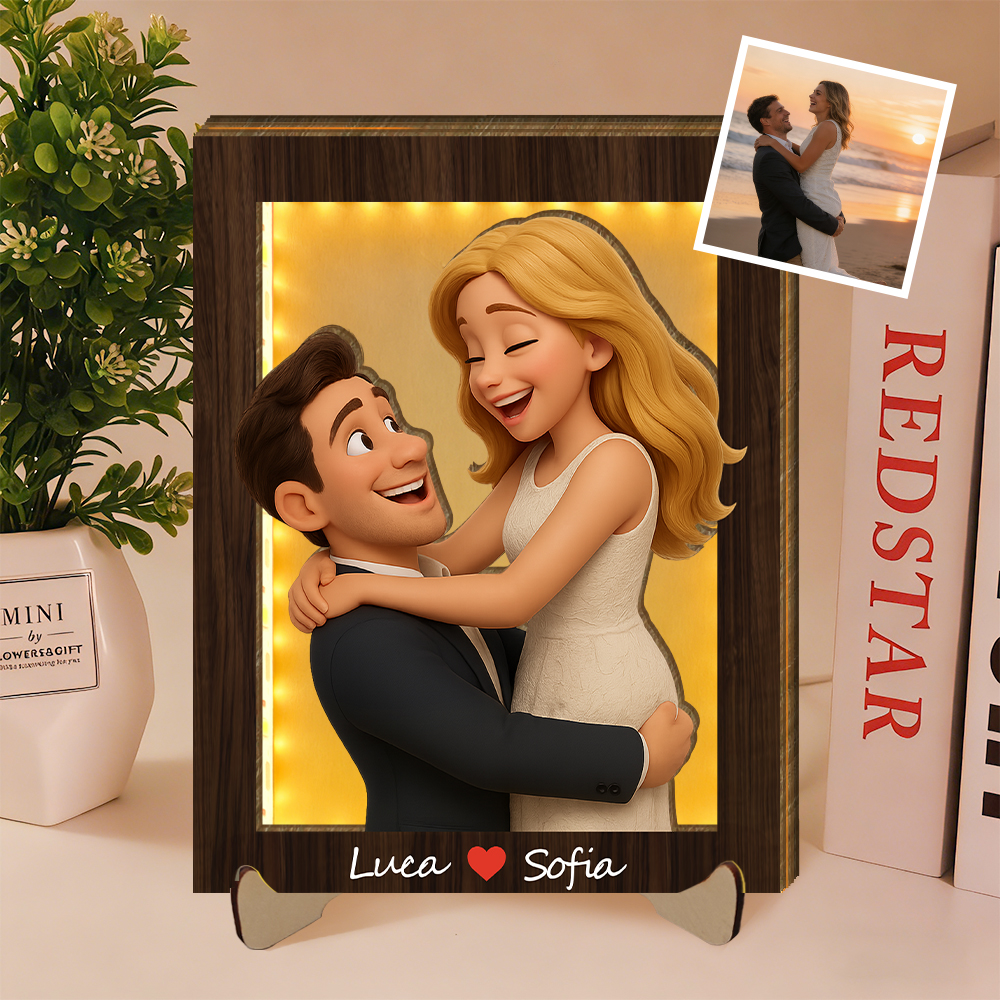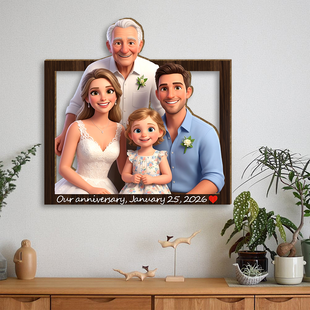 Turn your favorite photo into a charming cartoon-style artwork printed on a premium wooden panel. Each piece is custom-illustrated from your uploaded photo and printed directly onto a single, high-quality wood panel for a clean, modern, and long-lasting display. Perfect for couples, families, anniversaries, or unique home décor.