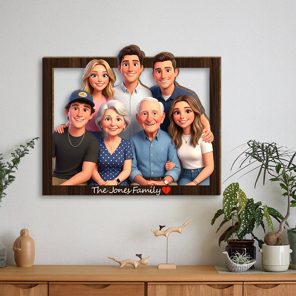 ⭐ Custom Cartoon Portrait Wooden Frame — Personalized Photo-to-Cartoon Art