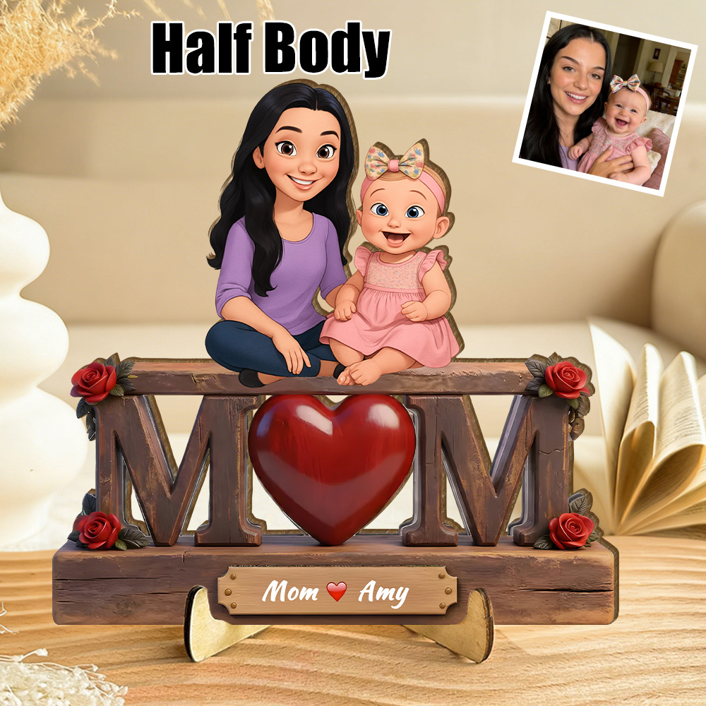 Custom 3d Wooden Cartoon Portrait Personalized Wall Art For Mom Unique Wood Decor For Home Ideal Mother's Day Birthday Gift For Mother