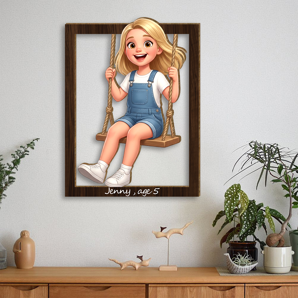Custom 3d Wooden Cartoon Portrait, Personalized Wood Wall Art, Cartooned Sign, Nursery Kids Room Decor, Creative Birthday Gifts For Children, Wood Decor