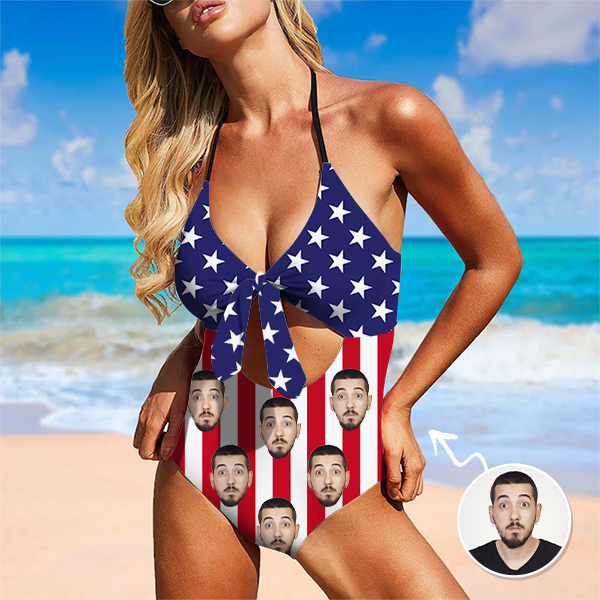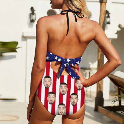 Custom American Flag Swimsuit Halter Neck One Piece Bathing Suit Outfits,gift For Her