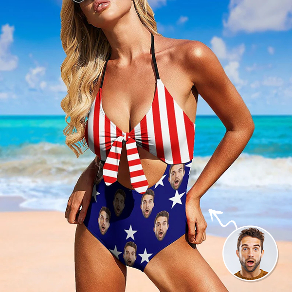 Custom American Flag Swimsuit Halter Neck One Piece Bathing Suits Outfits,gift For Her