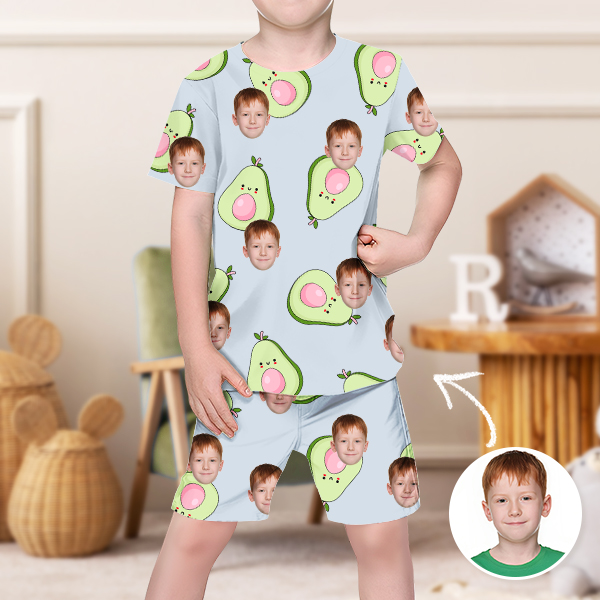 Custom Avocado Photo Fruit Pajamas Crew Neck Short Sleeve Short Pants Face Fruit House-wear Suit For Boys For Kids