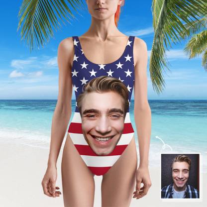 Custom Beach One-piece Bathing Swimsuit Personalized American Flag Photo Swimsuit For Women,gift For Wife