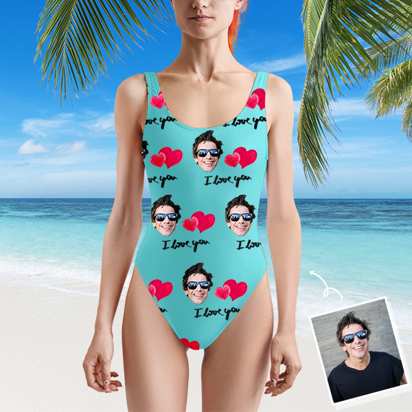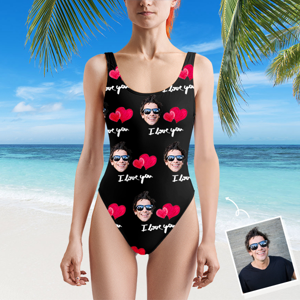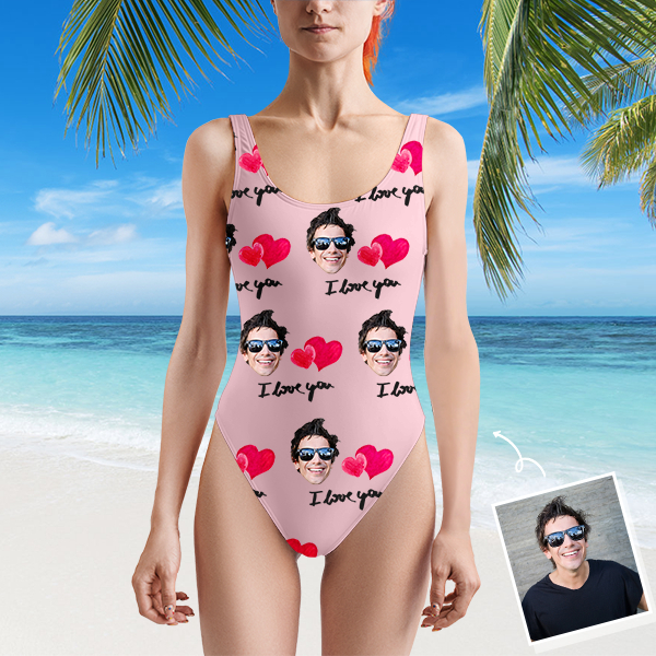 Custom Beach One-piece Bathing Swimsuit Personalized Face Heart Love Photo Swimsuit For Women,gift For Wife