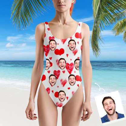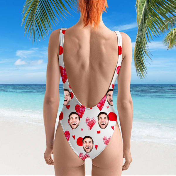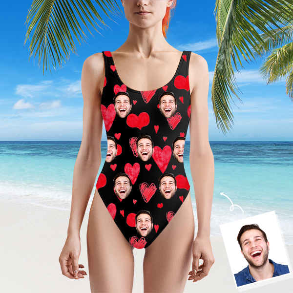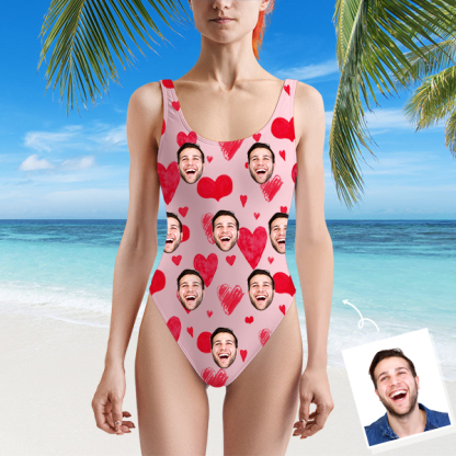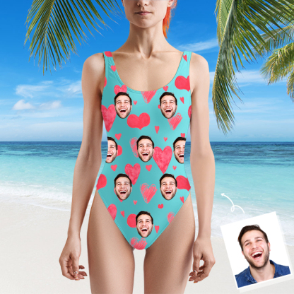 Custom Beach One-piece Bathing Swimsuit Personalized Face Heart Photo Swimsuit For Women,gift For Wife