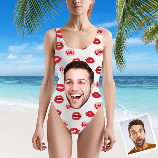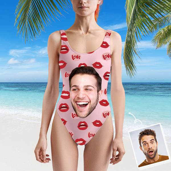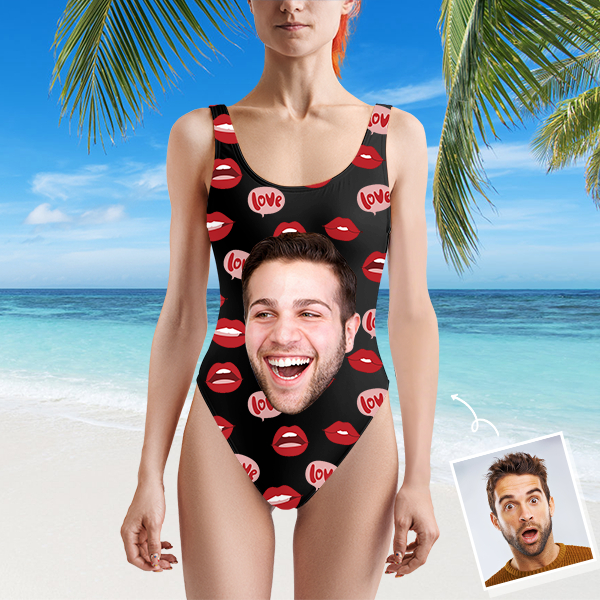 Custom Beach One-piece Bathing Swimsuit Personalized Face Red Lip Photo Swimsuit For Women,gift For Wife