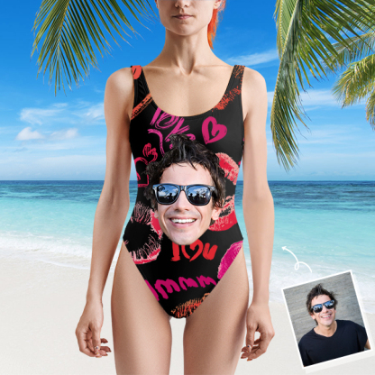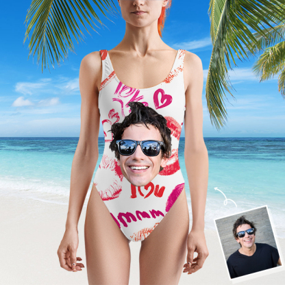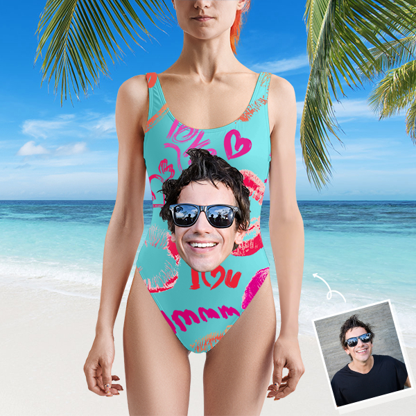Custom Beach One-piece Bathing Swimsuit Personalized Face Red Lips Photo Swimsuit For Women,gift For Wife