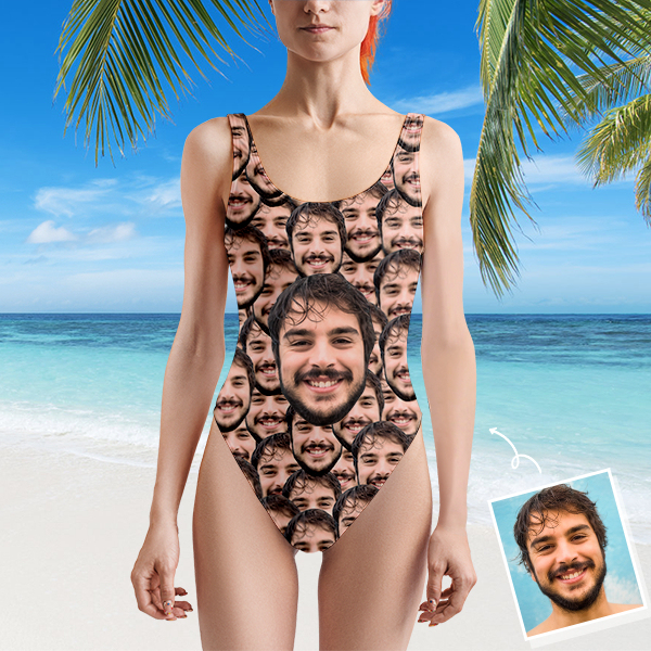 Custom Beach One-piece Bathing Swimsuit Personalized Photo Swimsuit With Face Funny For Women,gift For Wife
