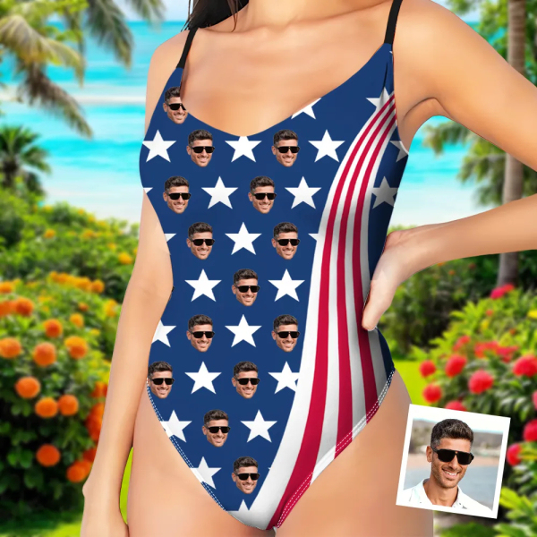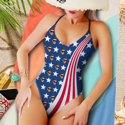 Custom Beach V-neck One-piece Bathing Swimsuit Personalized American Flag Straps Swimsuit For Women,gift For Wife
