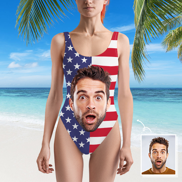 Custom Beach Wear One-piece Swimsuit Personalized American Flag Photo Swimsuit For Her ,gift For Wife