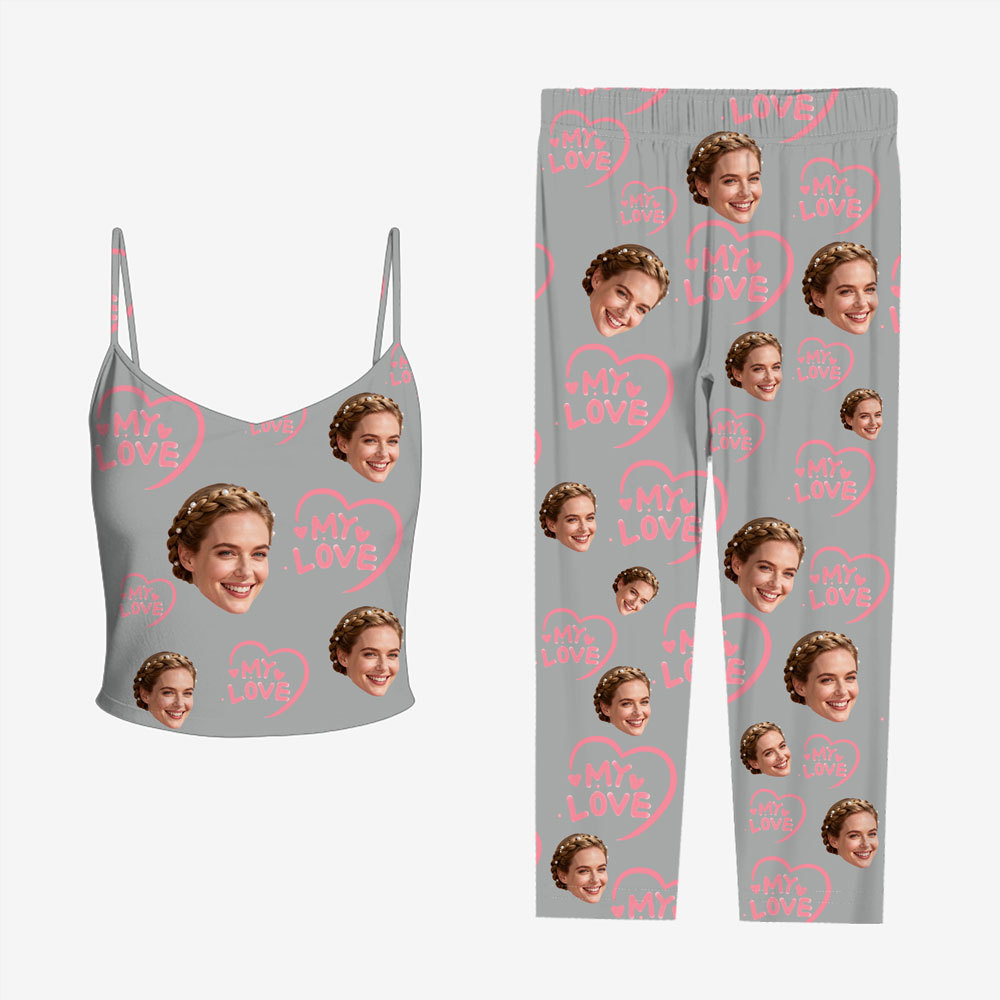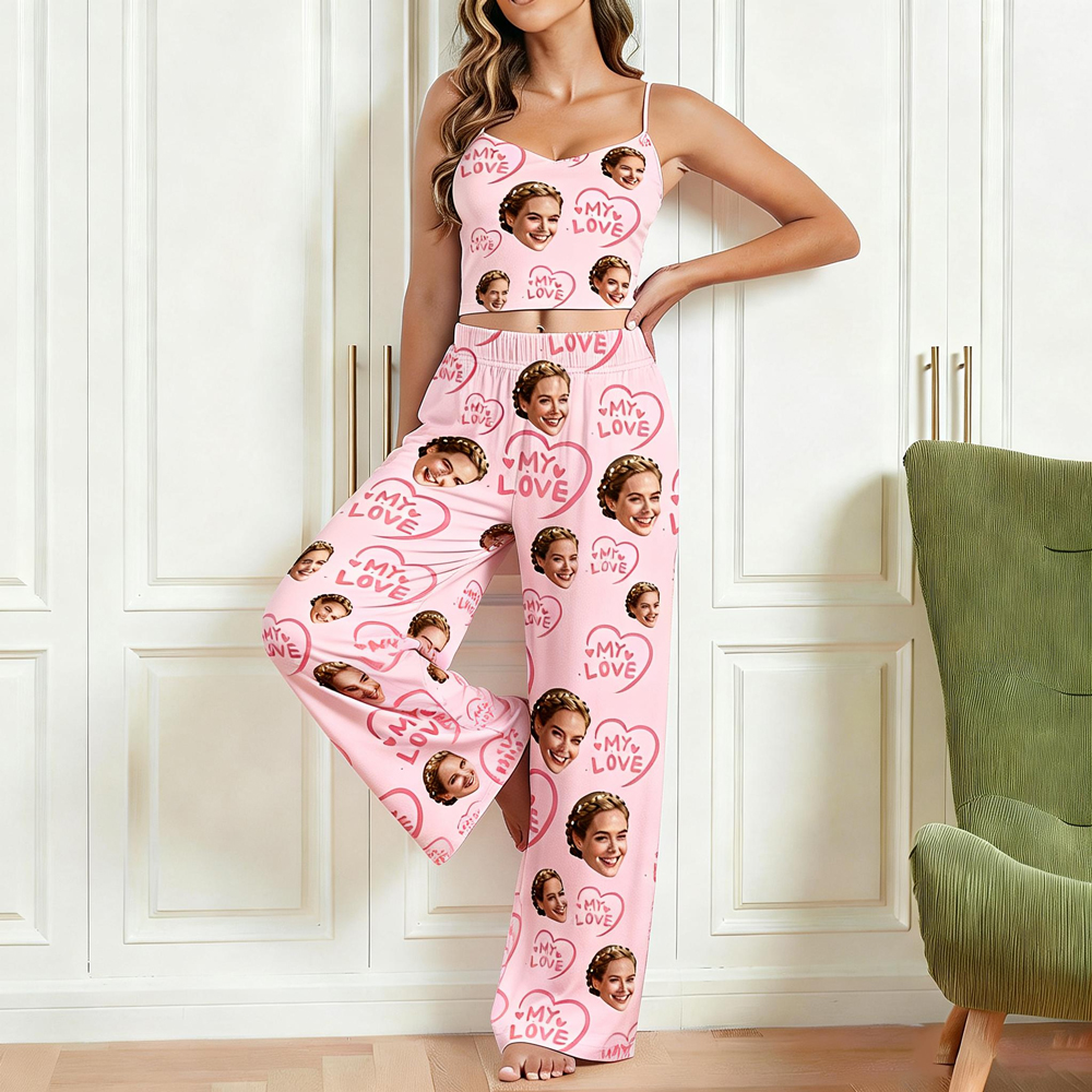 Custom Cami Top Pajamas Set Face & Name Long Pants Pajamas Custom Photo Pajamas Gift For Valentine Day For Wife For Girlfriend