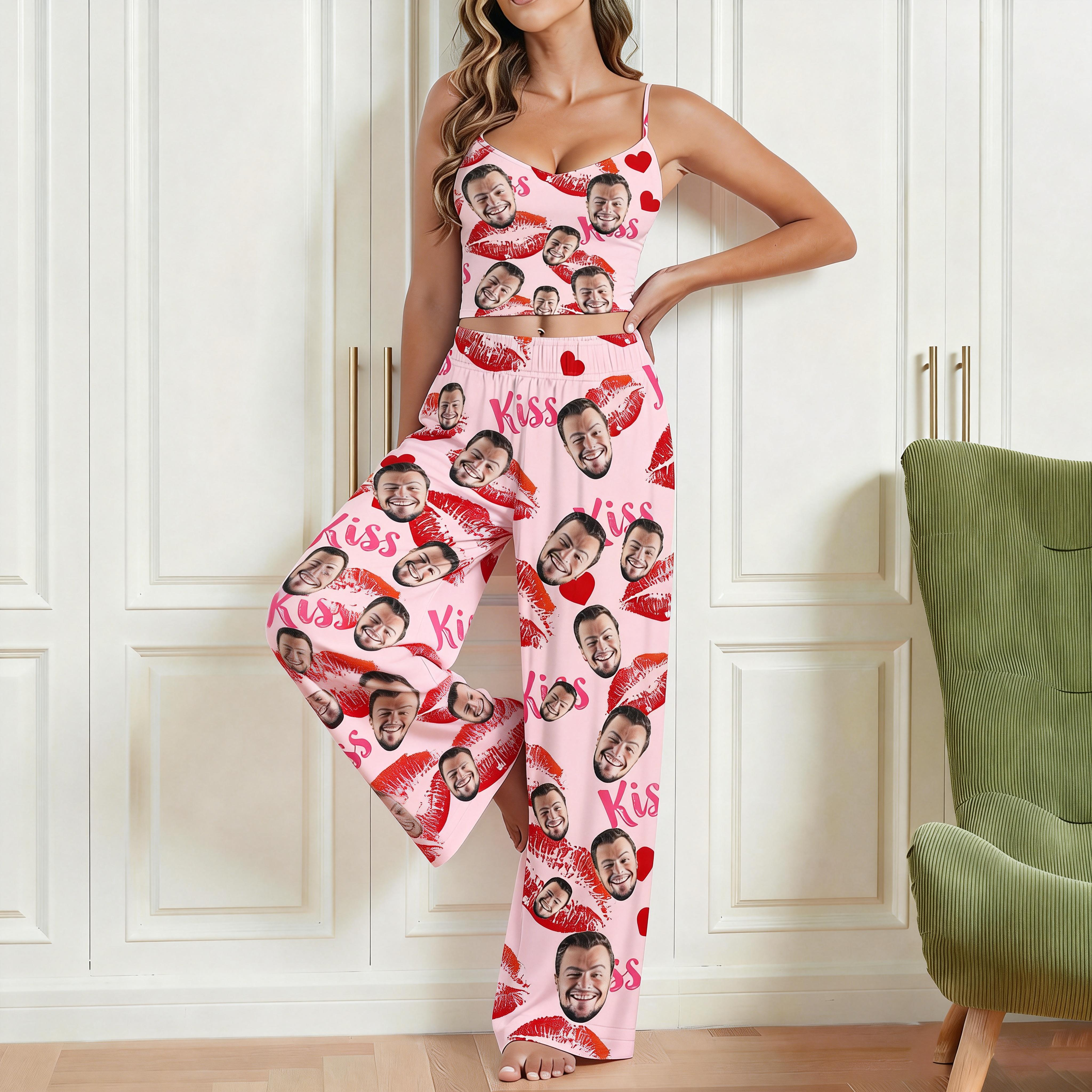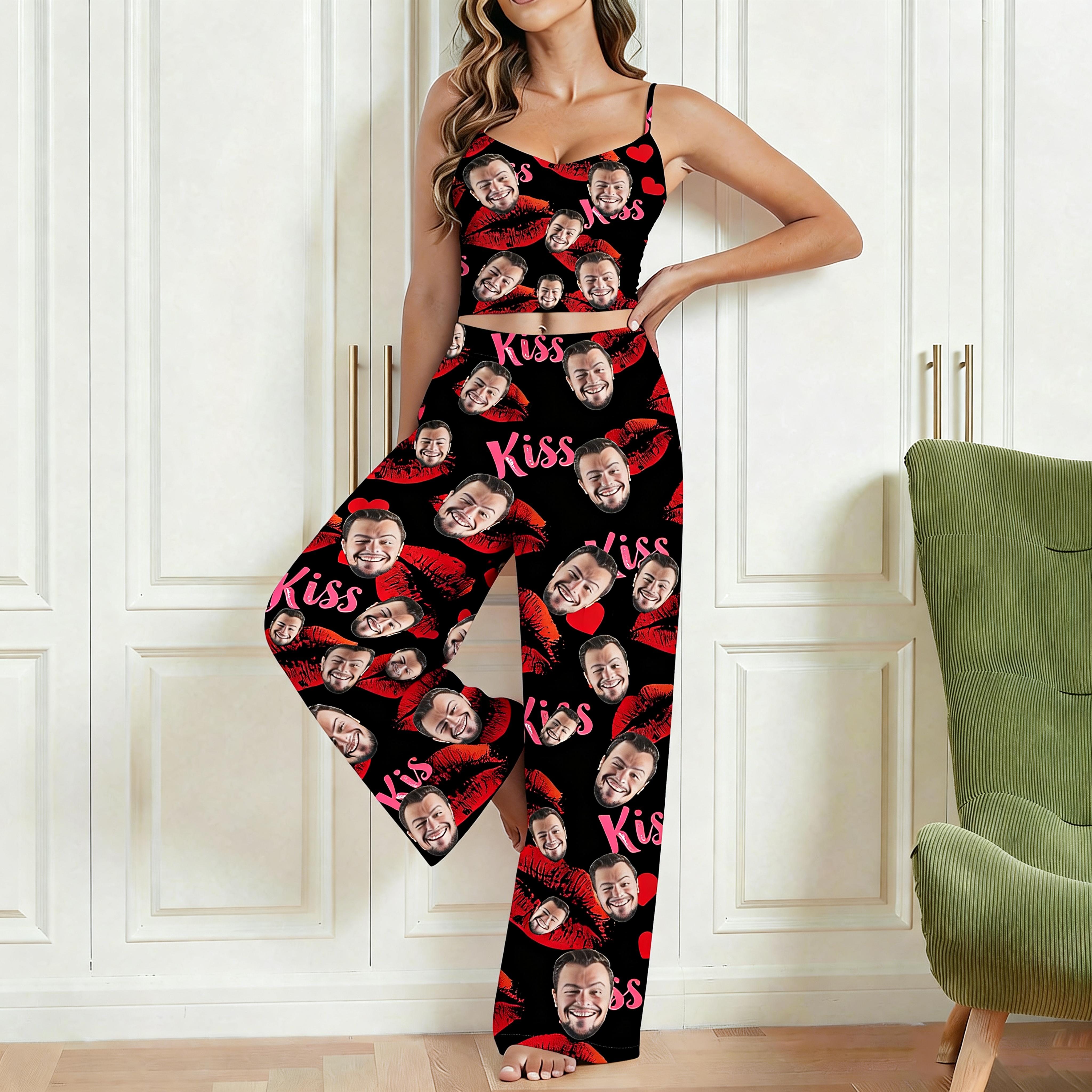 Custom Cami Top Pajamas Set Face & Name Long Pants Pajamas Custom Photo Pajamas Gift For Valentine Day For Wife For Girlfriend
