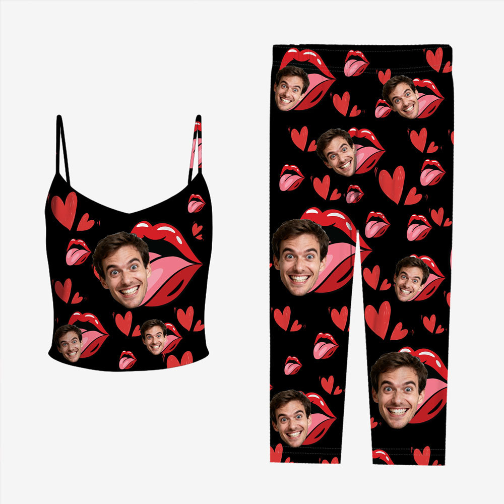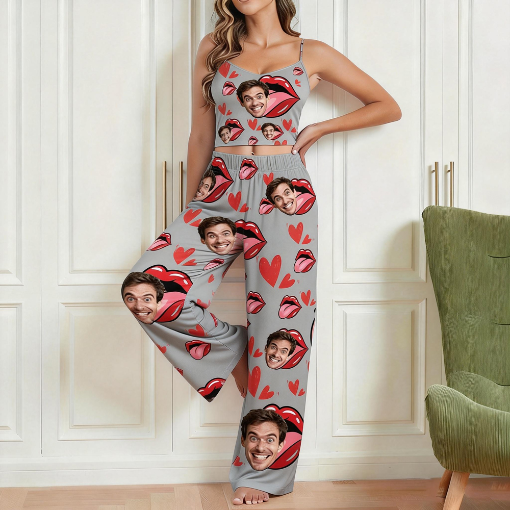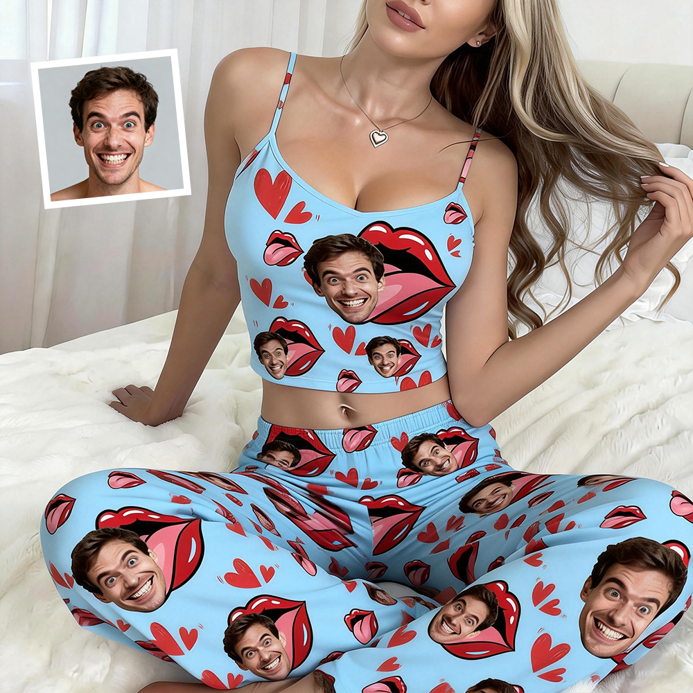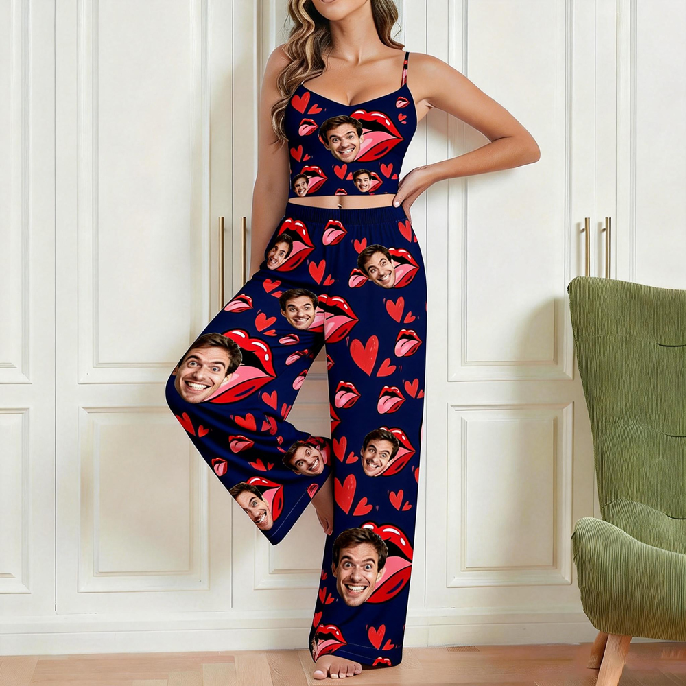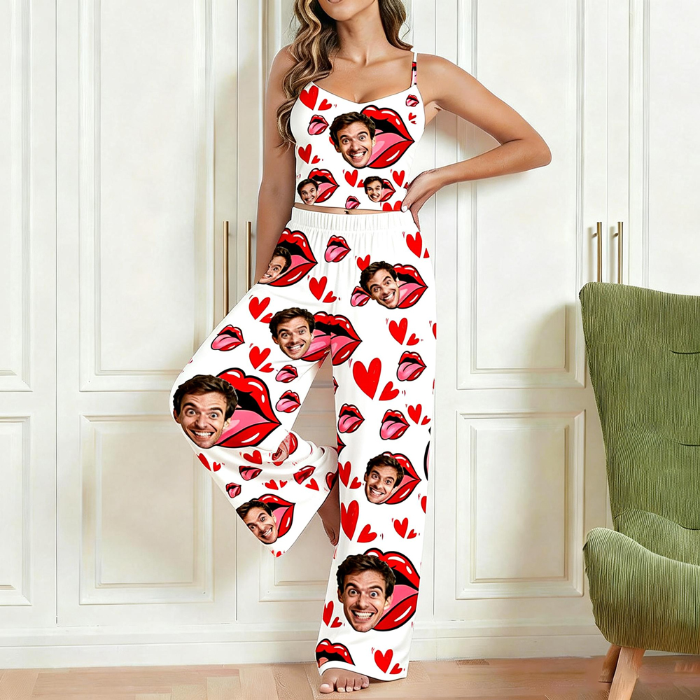 Custom Cami Top Pajamas Set Face & Name Long Pants Pajamas Custom Photo Pajamas Gift For Valentine Day For Wife For Girlfriend