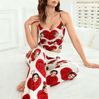 Custom Cami Top Pajamas Set Face & Namelong Pants Pajamas Custom Photo Pajamas Gift For Lovers For Wife For Girlfriend