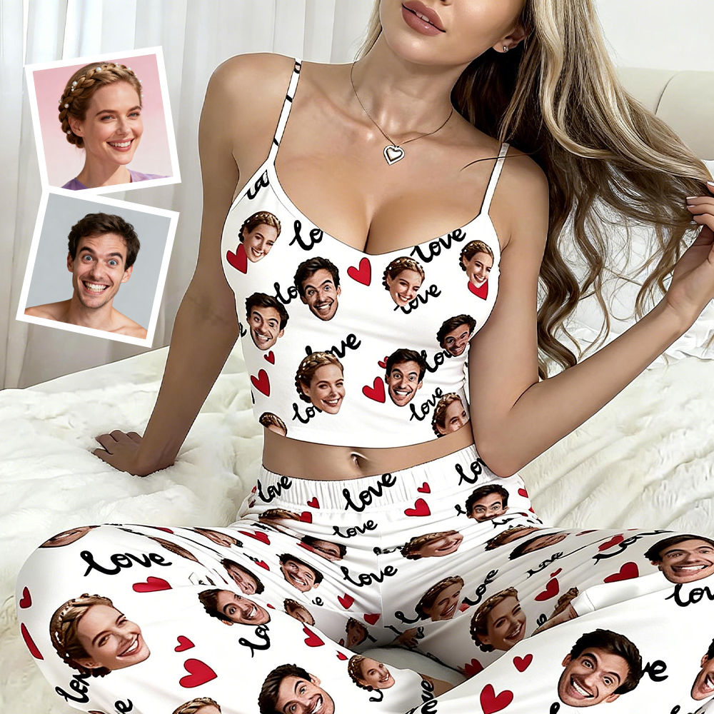 Custom Cami Top Pajamas Set Face & Namelong Pants Pajamas Custom Photo Pajamas Gift For Lovers For Wife For Girlfriend