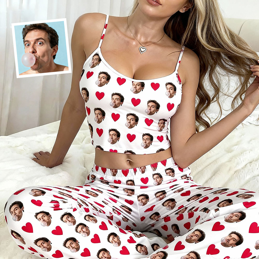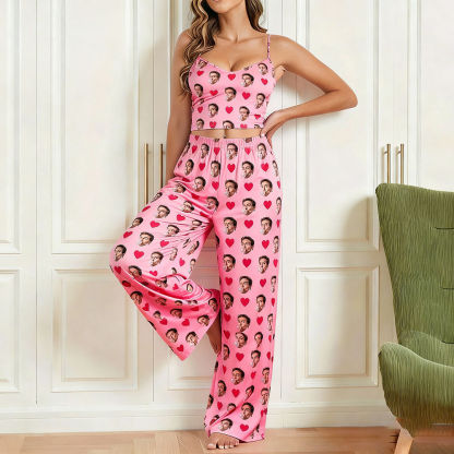 Custom Cami Top Pajamas Set Face & Namelong Pants Pajamas Custom Photo Pajamas Gift For Valentine Day For Wife For Girlfriend