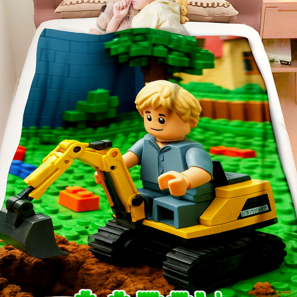 Custom Cartoon Blanket – Personalized 3d Effective Block Style Blanket With Photos & Name | Unique Gift For Family For Christmas For Kids