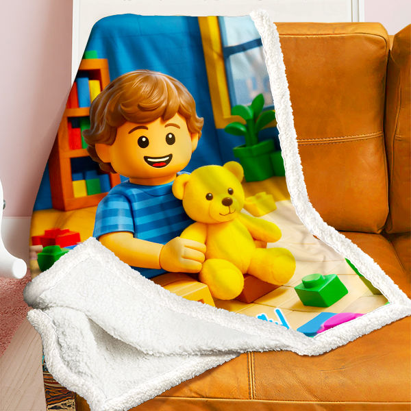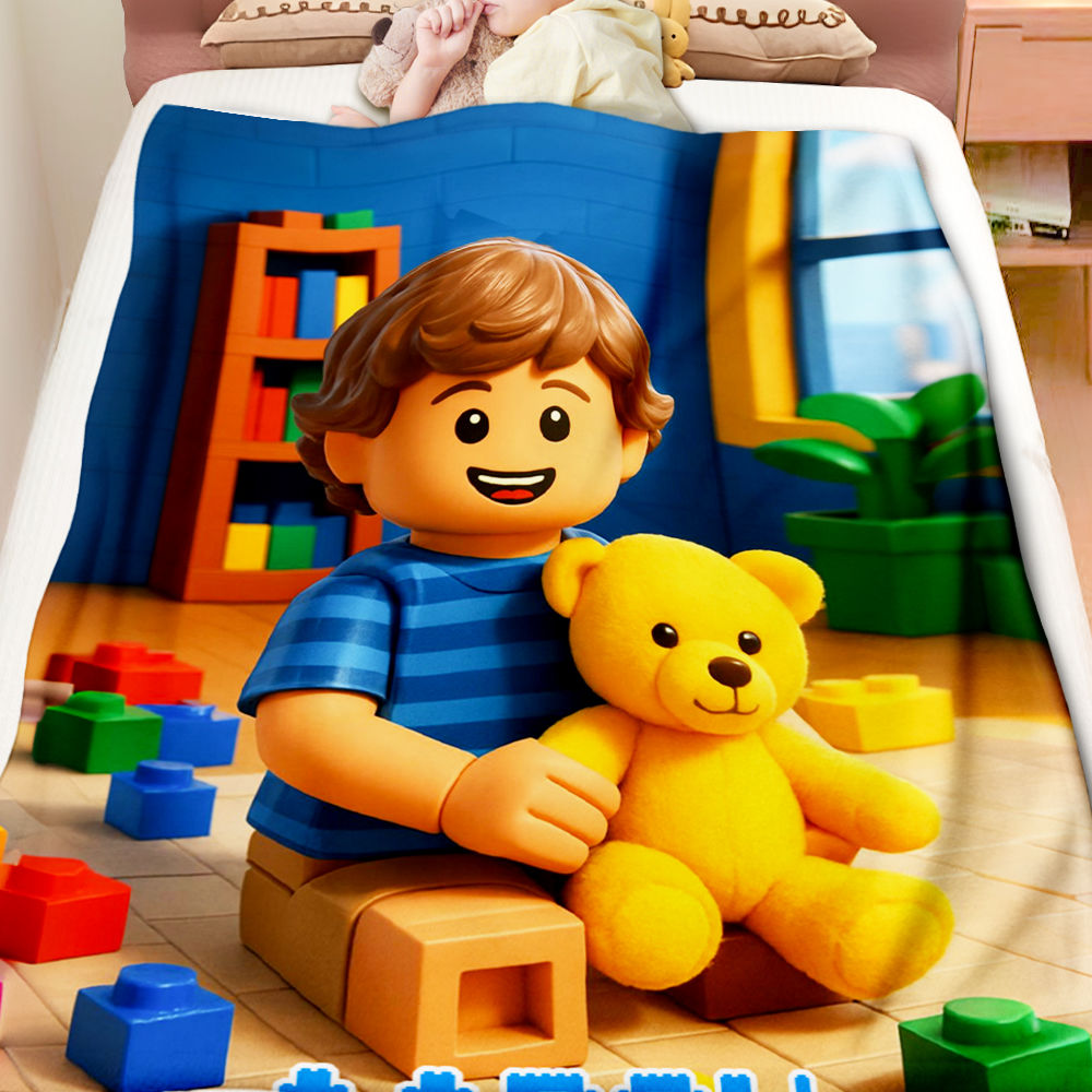 Custom Cartoon Blanket – Personalized 3d Effective Block Style Blanket With Photos & Name | Unique Gift For Family For Christmas For Kids