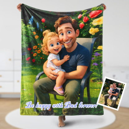 Custom Cartoon Blanket – Personalized 3d Effective Blocks Style Blanket With Photos & Name | Unique Gift For Family For Christmas For Dad For Kids