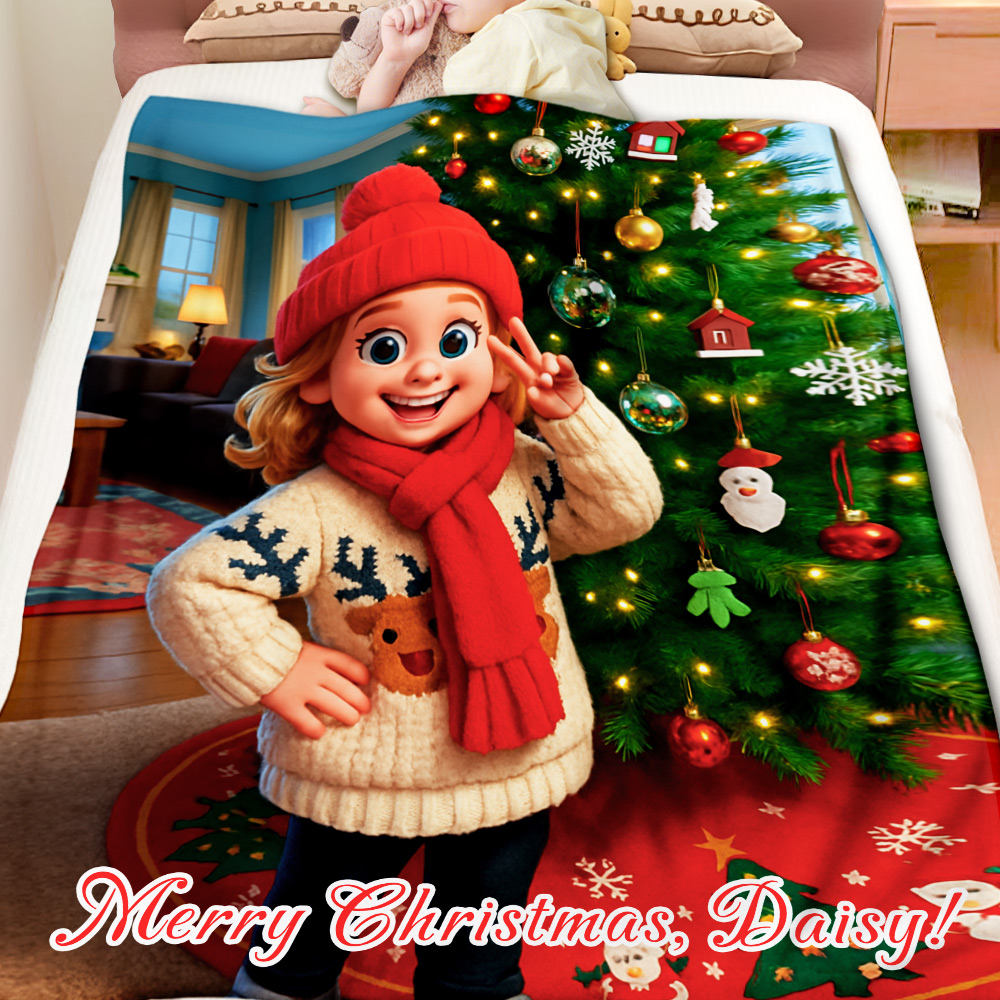 Custom Cartoon Blanket – Personalized 3d Effective Blocks Style Blanket With Photos & Name | Unique Gift For Family For Christmas For Kids