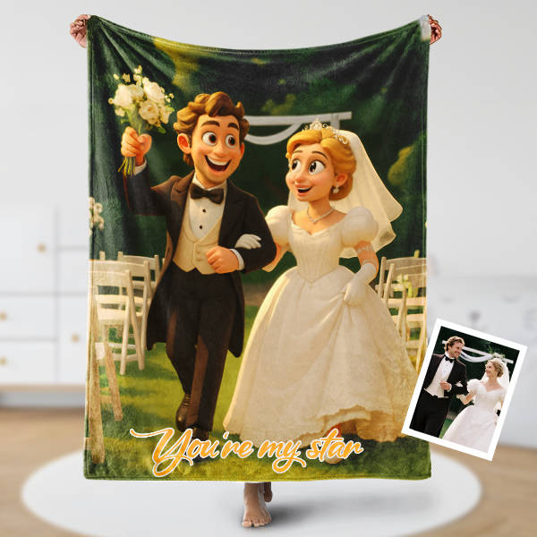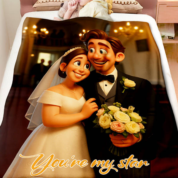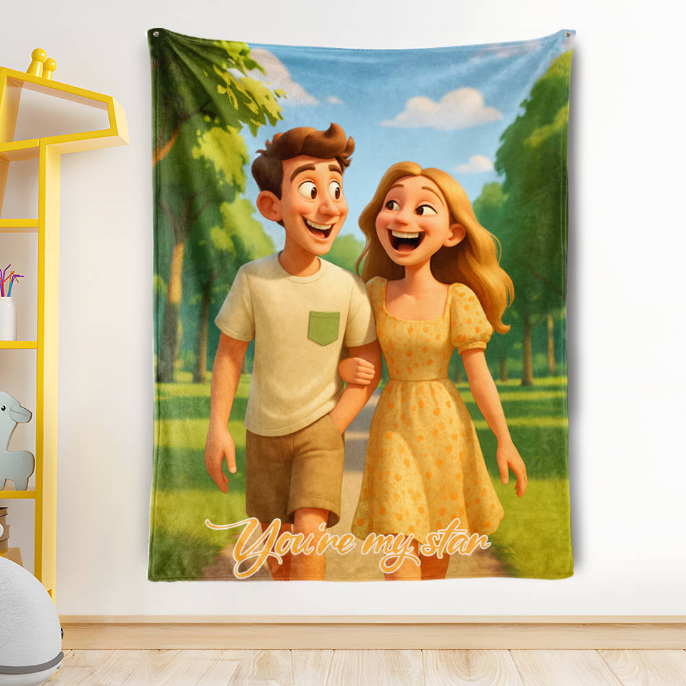Custom Cartoon Blanket – Personalized 3d Effective Wool Felt Style Blanket With Photo & Name | Unique Gift For Couples & Lovers & Family