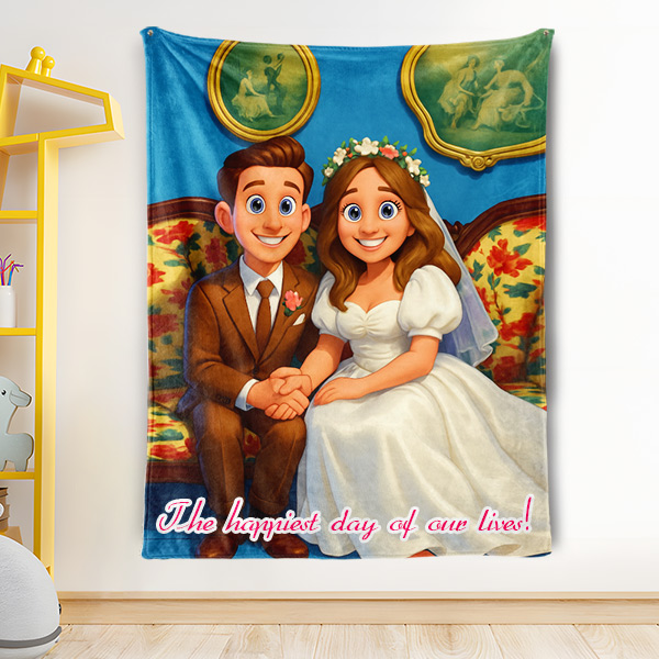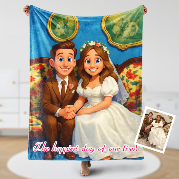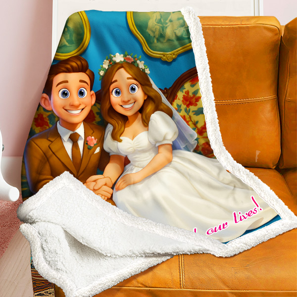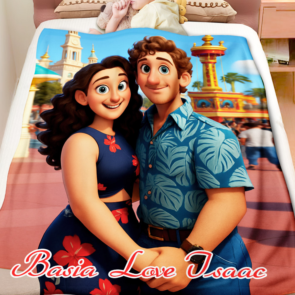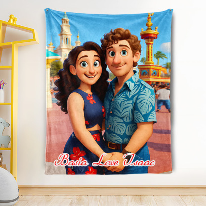 Custom Cartoon Blanket – Personalized 3d Effective Wool Felt Style Blanket With Photo & Name | Unique Gift For Couples & Lovers & Family