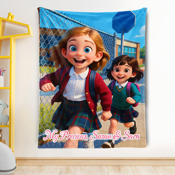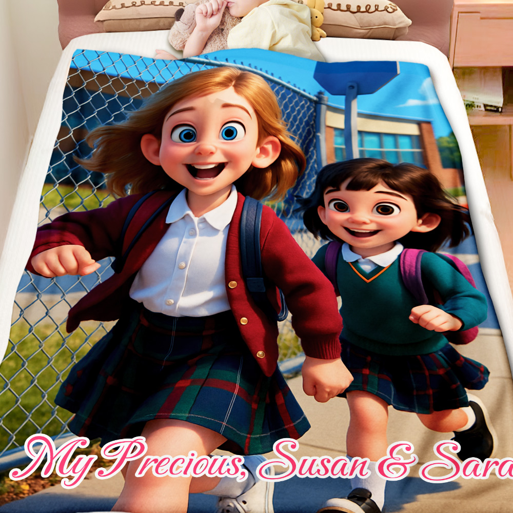 Custom Cartoon Blanket – Personalized 3d Effective Wool Felt Style Blanket With Photo & Name | Unique Gift For Family For Christmas For Kids