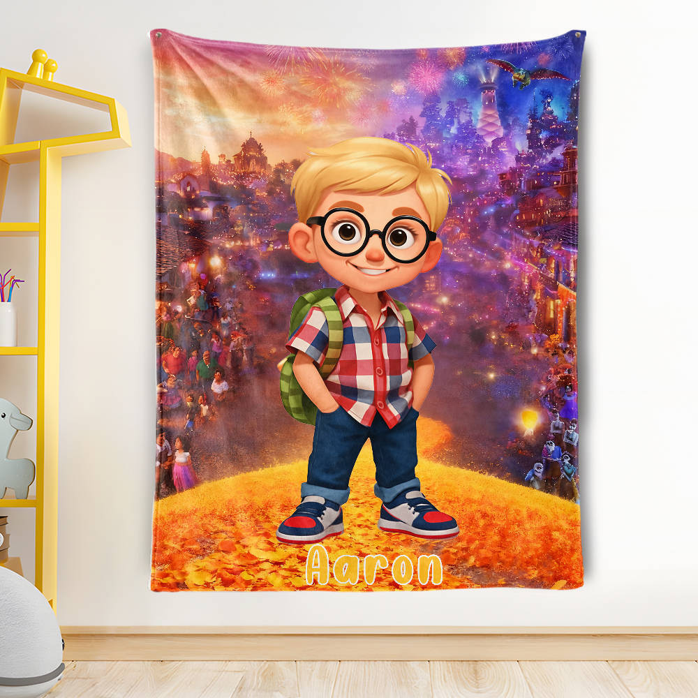 Custom Cartoon Blanket – Personalized 3d Effective Wool Felt Style Blanket With Photo & Name | Unique Gift For Family For Christmas For Kids