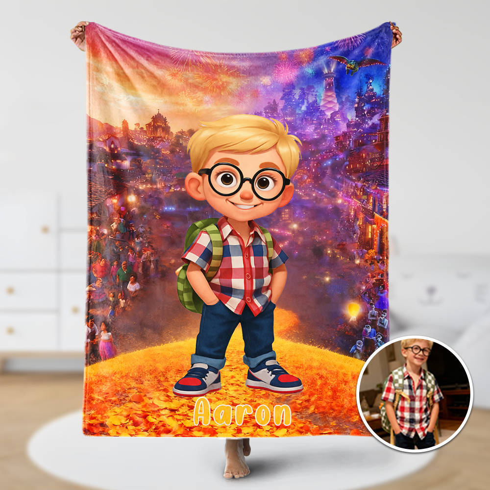 Transform your child into their favorite charactor! This Personalized Face Blanket features their face and name printed on a bold, action-packed design. Whether it’s naptime, playtime, or a cozy movie night, this blanket adds fun, warmth, and a touch of magic to every moment.