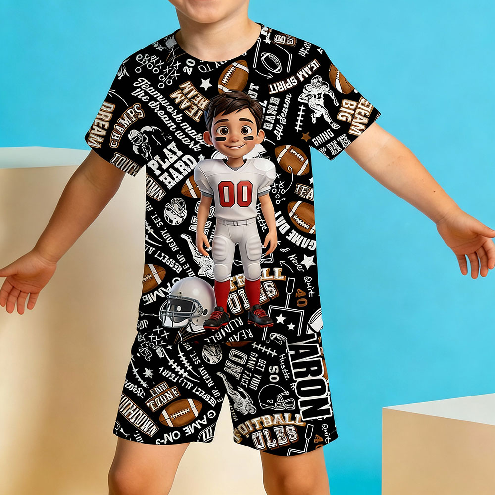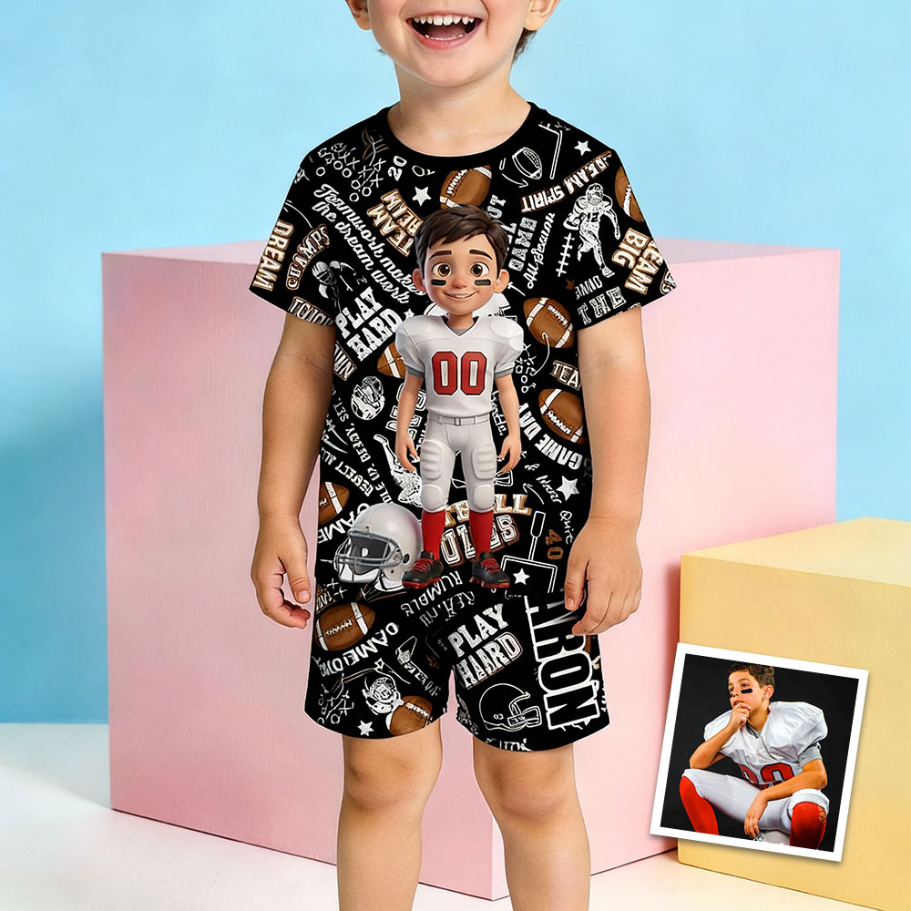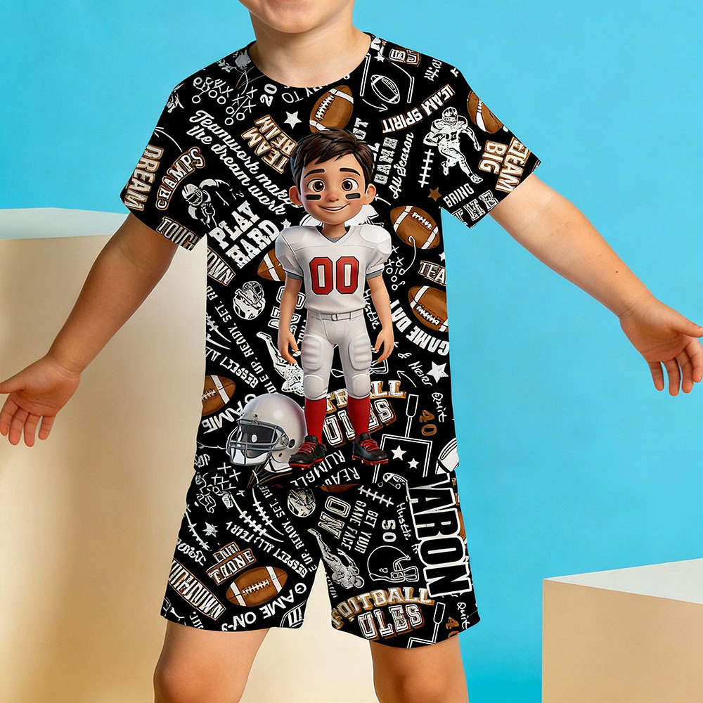 Custom Cartoon Pajamas Short Sleeve Short Pants Face & Name Pajamas Gift Sport House-wear Suit For Boys