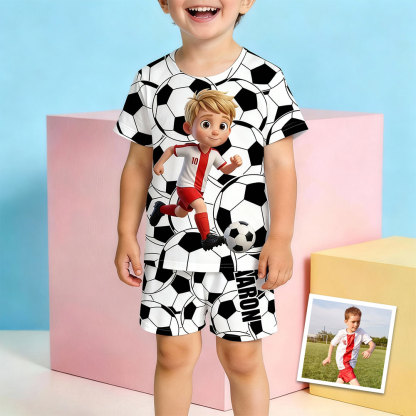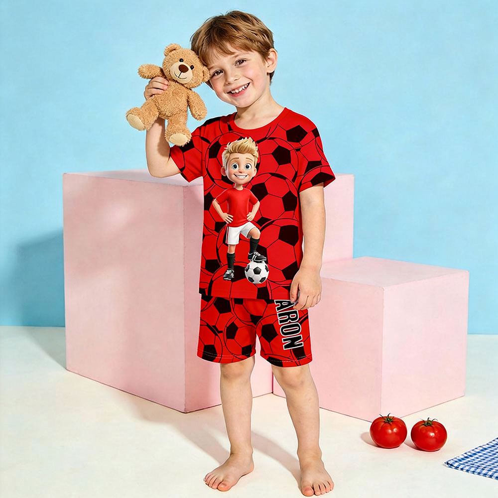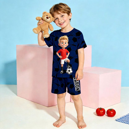 Custom Cartoon Photo Pajamas Crew Neck Short Sleeve Short Pants Face & Name House-wear Suit For Boys
