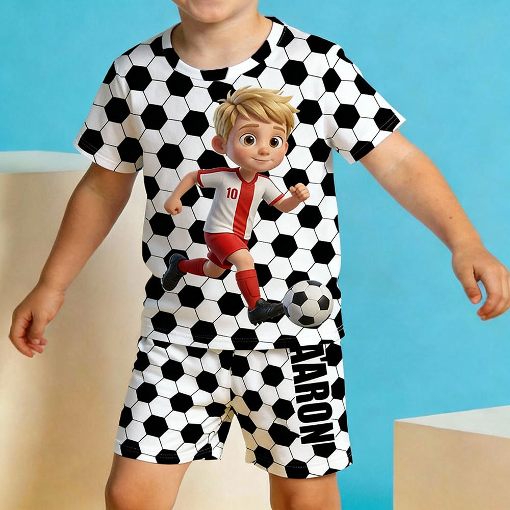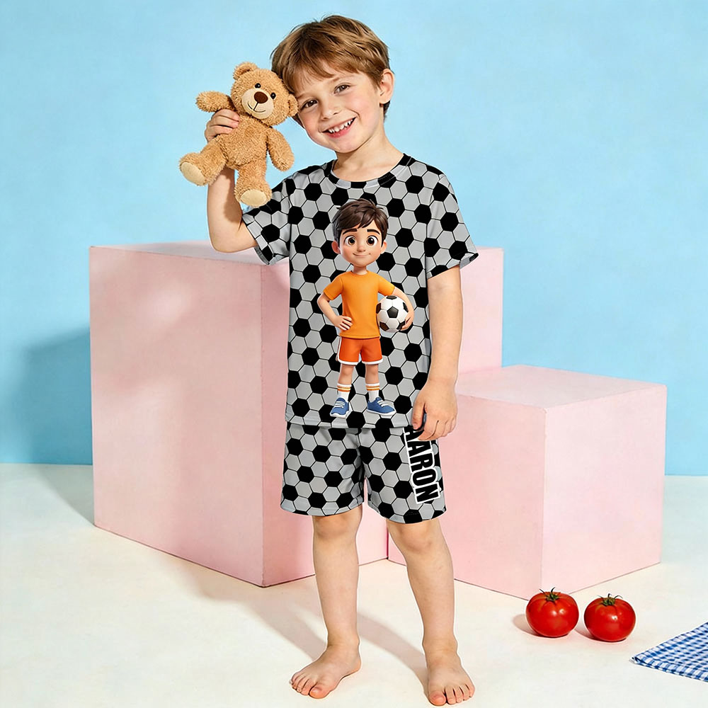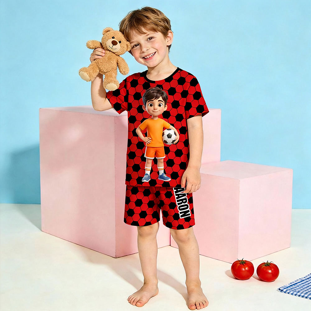 Custom Cartoon Photo Pajamas Crew Neck Short Sleeve Short Pants Pajamas Face & Name House-wear Suit For Boys