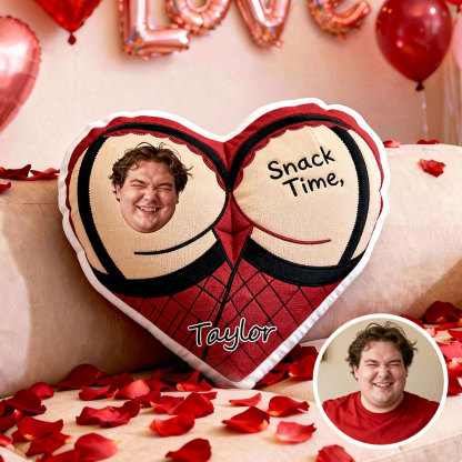 Custom Couple Photo Pillow – Red Heart-shaped Personalized Pillows For Valentine’s Day Gift