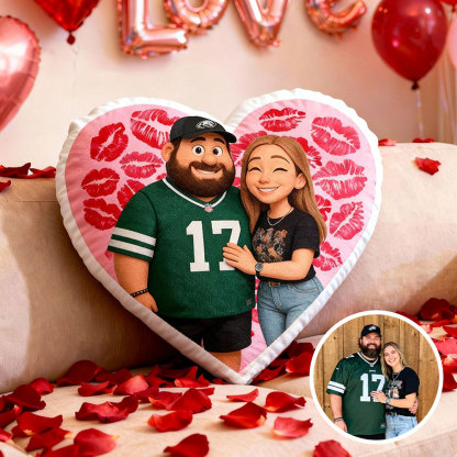 Custom Couple Photo Pillow – Red Heart-shaped Personalized Pillows For Valentine’s Day Gifts