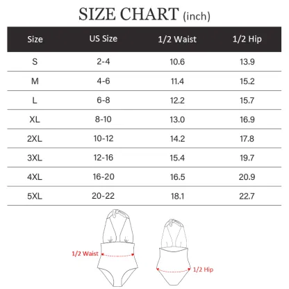 | Size | US Size | 1/2Waist | 1/2 Hip |