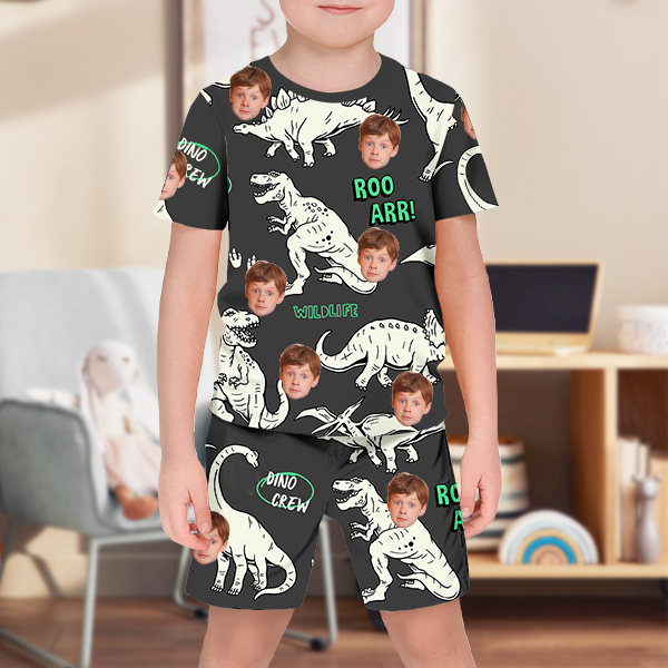 Custom Dinosaur Photo Fruit Pajamas Crew Neck Short Sleeve Short Pants Face House-wear Suit For Boys For Kids