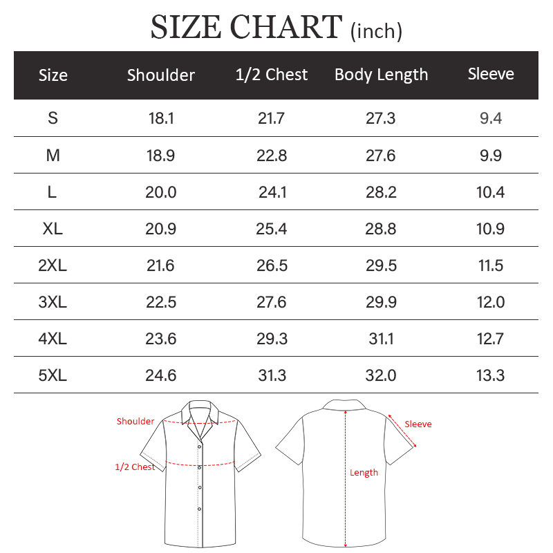 Due to manual measurement, there will be an error of 0.5-1.5 inches.| Size | Shoulder | 1/2 Chest | Length | Sleeve |