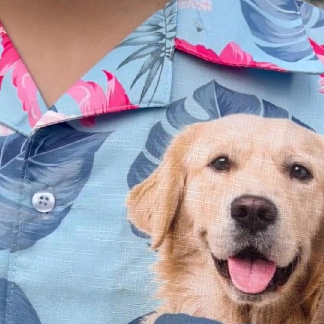 Custom Dog Men's Pet Face Flower Hawaiian Shirt Beach Shirt Holiday Gift For Men, For Pet Lover