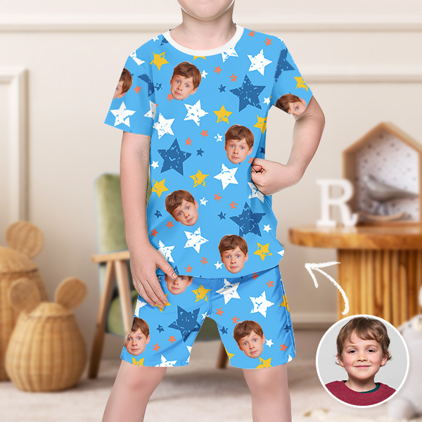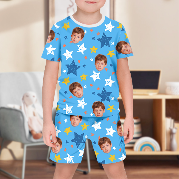 Custom Stars Photo Fruit Pajamas Crew Neck Short Sleeve Short Pants Face Fruit House-wear Suit For Boys For Kids