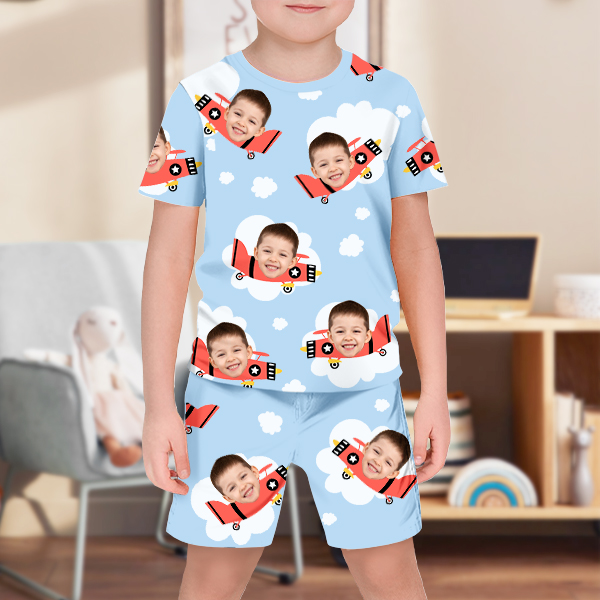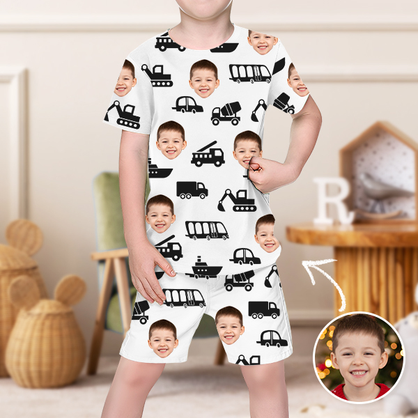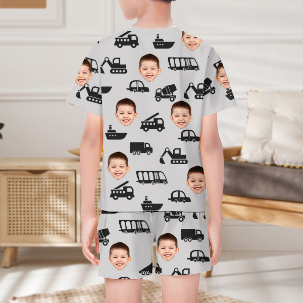 Custom Engineering Vehicle Photo Fruit Pajamas Crew Neck Short Sleeve Short Pants Face House-wear Suit For Boys For Kids