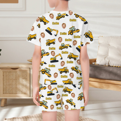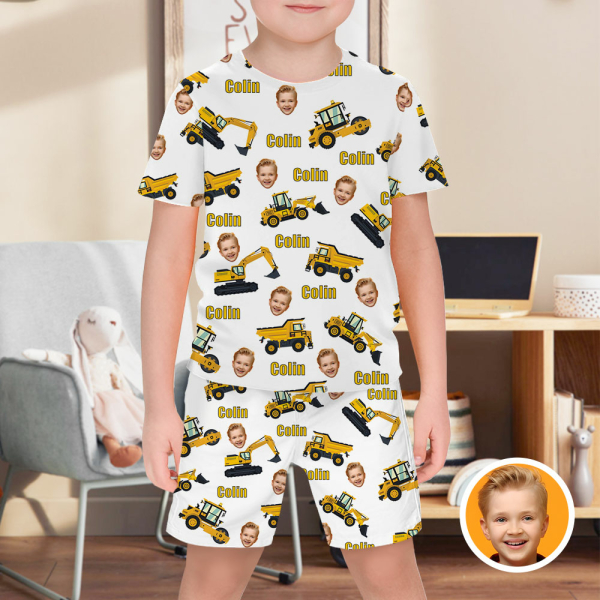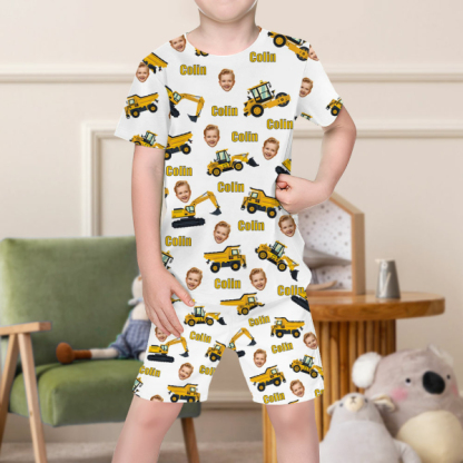 Custom Engineering Vehicle Photo Pajamas Crew Neck Short Sleeve Short Pants Face Home-wear Suit For Boys For Kids