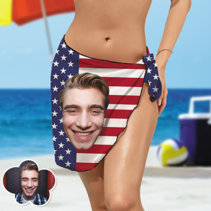 Custom Face American Flag Swimswear Cover Up Beach Wrap Swim Skirts For Women For Wife