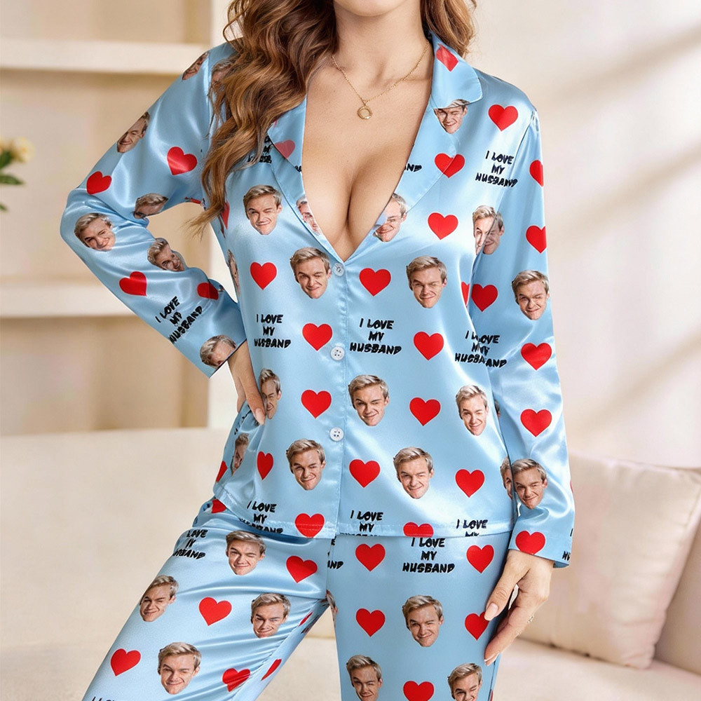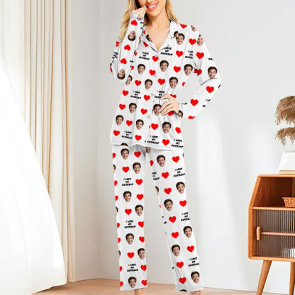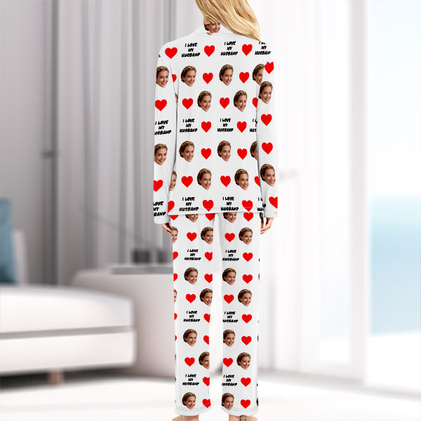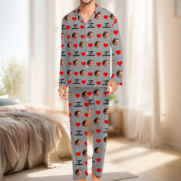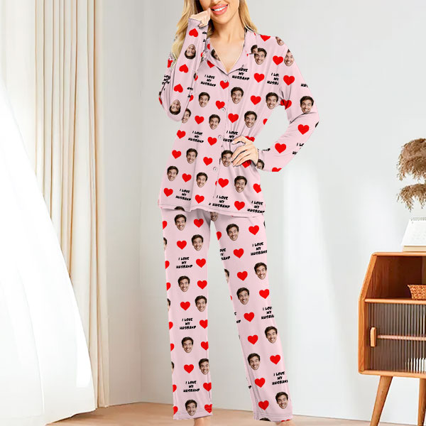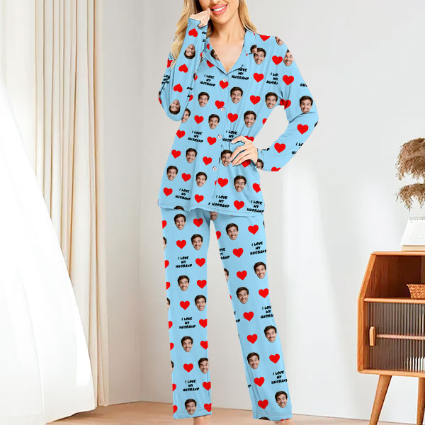 Custom Face Long Sleeve Button-front Long Pants Pajamas Custom Photo Pajamas Gift For Lover, For Couple