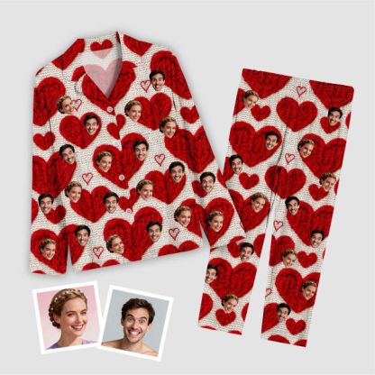 Custom Face Long Sleeve Button-front Long Pants Pajamas Custom Photo Pajamas Gift For Lovers, For Couples