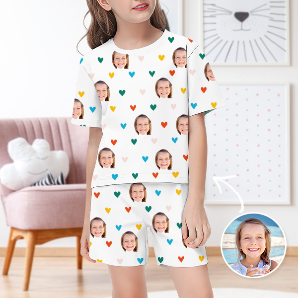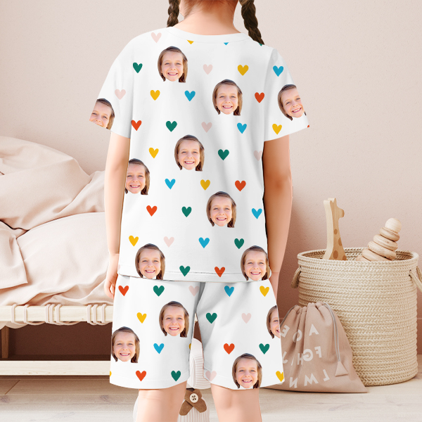 Custom Face Pajamas Crew Neck Short Sleeve Short Pants Heart House-wear Suit For Kids